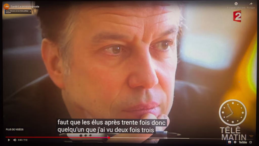 « Pour que je reconnaisse les gens, il faut que je les ai vus à peu près 30 fois. » (02:57-03:00)